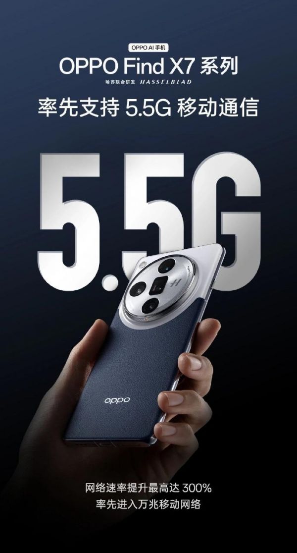 图源:OPPOOPPO 官方今日也发表微博,称 OPPO Find X7 系列手机将率先支持 5.5G 移动通信,并表示网络速率“最高提升达 300%”。
