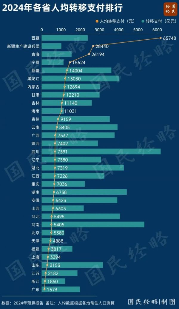 这也不难理解。西藏地处偏远,环境艰苦,经济产业基础薄弱,但肩负国防重任,战略意义重大,因此给予大量的转移支付,并非没有理由。