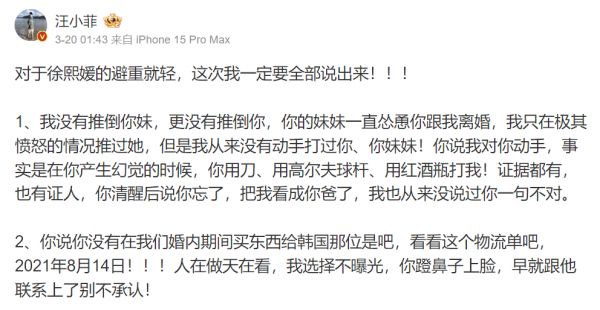 汪小菲与大S之间兰因絮果的婚姻故事在离婚后仍频频登上舆论的风口浪尖。继前一段时间的大S再婚、天价电费、夺回床垫等八卦事件后,汪小菲近日在微博再度出招,自爆从物流单里发现大S早在离婚之前就有买东西寄到韩国给具俊烨,力证女方出轨。