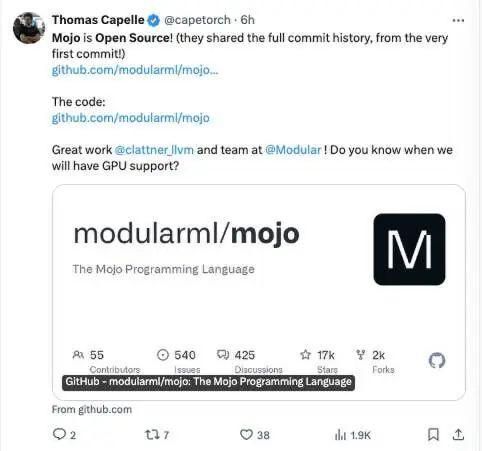 比 Python 快 9 万倍的 Mojo 终于开源了!刚上线 star 已超过 1.7 万