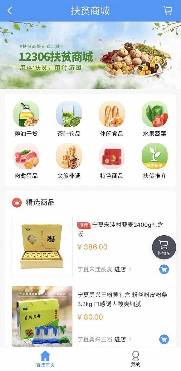 界面新闻注意到,扶贫商城中销售的产品以农副产品为主,包括粮油干货、茶叶、零食、水果、肉类等品种,有来自河南栾川的玉米糁、红豆薏米粉、蜂蜜、香菇等,以及宁夏的藜麦、燕麦、牛肉等。