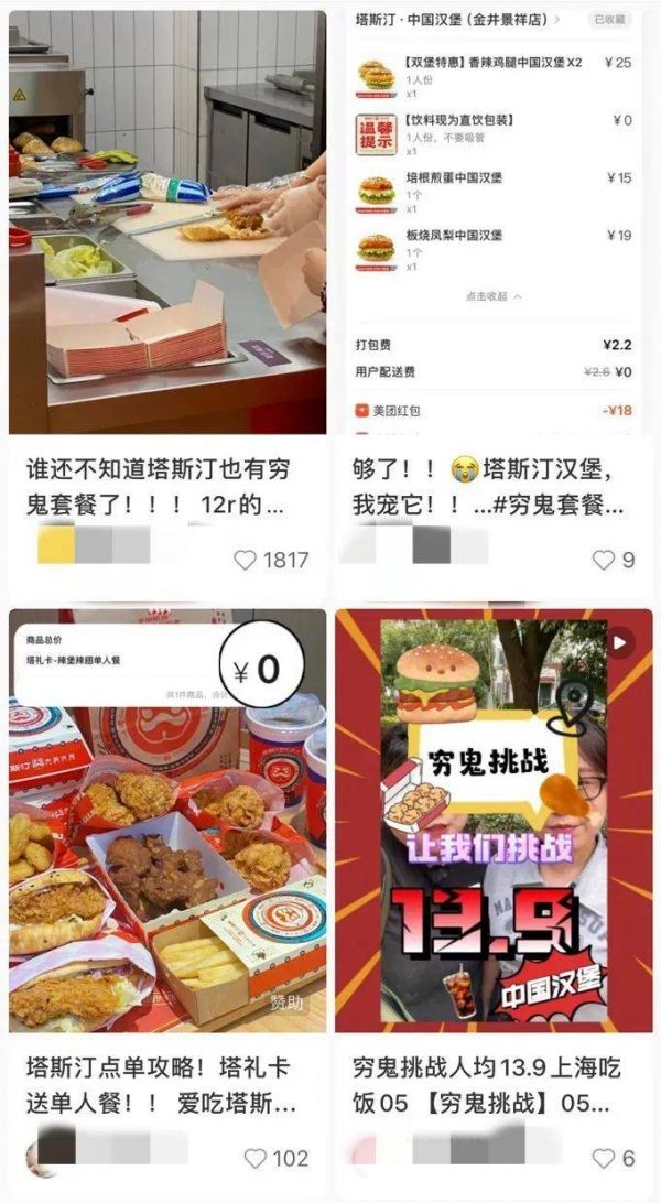 社交平台上关于中式汉堡“穷鬼套餐”的攻略分享。(图/小红书截图)