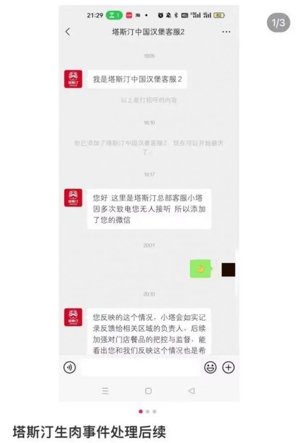 网友在社交平台上反映在快餐店吃到生肉的问题。(图/小红书截图)