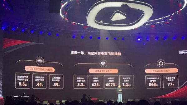 在淘宝的努力下,其内容电商得到了显著增长。数据显示,2023年淘宝内容消费用户规模同比增长44%;月成交破百万的直播间达1.2万个;新增内容创作者863万、新开播账号增加77万。