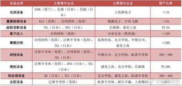 涂胶显影领域,国产化率5%左右,相关公司有盛美上海、芯源微。这些细分领域的公司也值得关注。