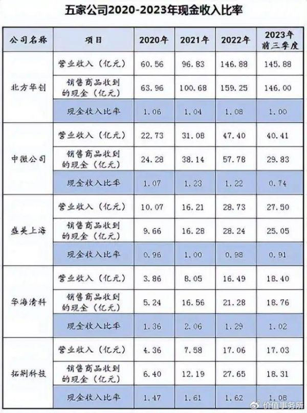 横向对比的话,华海清科的净现比比其它公司高,中微公司和拓荆科技其次,盛美上海差一点。