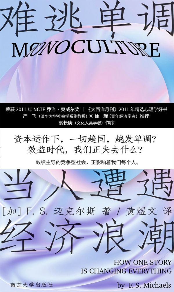 按照加拿大作家F·S迈克尔斯在《难逃单调》里的说法来解释,人们接受了单一文化,即绩效主义、经济故事的框架,放弃了对多样性的认可,这种状况沁入了各个角落: