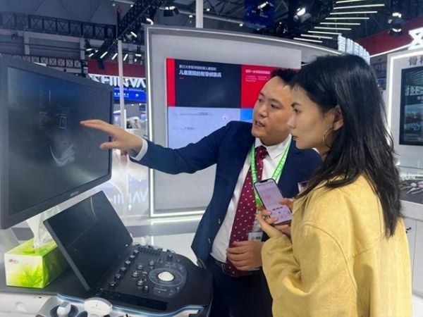 迈瑞医疗工作人员正在向人民日报健康客户端记者介绍首发超声产品。主办方供图“这是我们自主研发国产超高端影像设备,从预研到上市经过了8年的时间,打破了此前超高端影像设备由国外垄断的市场格局。”迈瑞展台工作人员向记者介绍,当前,医学影像的发展已经进入数字化智能化时代,对影像设备而言,图像清晰度是最核心的需求,它能够让医生看到更真实的人体生理、病理的情况。