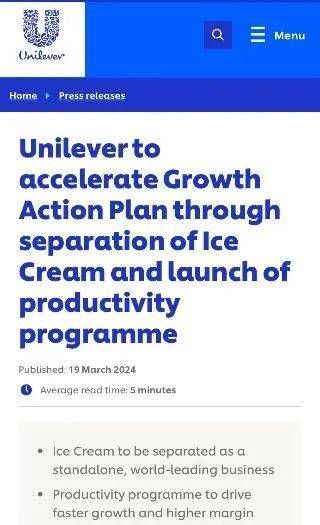 联合利华官网上发布的冰淇淋业务分拆公告。(图/企业官网)
