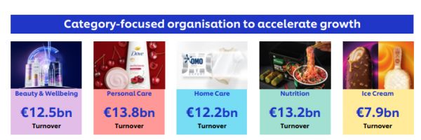 联合利华的五大业务板块和年收入。(图/企业财报)