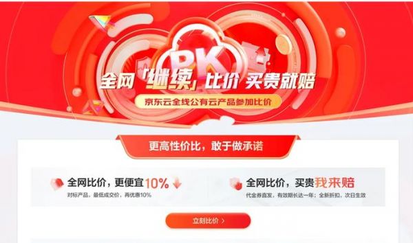 去年6.18和双11,京东云两次加码,进一步把比价时间拓展到“全线产品”和“常态化比价”,并做出过承诺“在特定云服务商的最低成交价基础上,再打折10%,买贵就赔”。