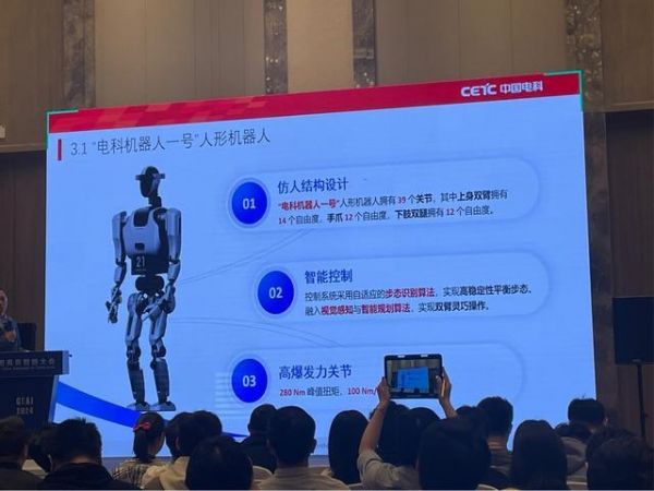 当前,国内人形机器人具备完善的工业产业链,为其提供了强大的制造和技术支持。与日益增长的市场需求相结合,国内人形机器人在巨大的需求优势下拥有广阔前景。中国电科此次带来了最新研究成果“电科机器人一号”人形机器人,全身拥有39个关节,通过控制系统采用自适应的步态识别算法,实现高稳定性平衡步态,并融入视觉感知与智能规划算法,实现双臂灵巧操作。“双臂协同控制可以实现人形机器人双臂之间的协同作业与精准控制,通过大模型则可以实现人形机器人机械臂的通用语言控制。”