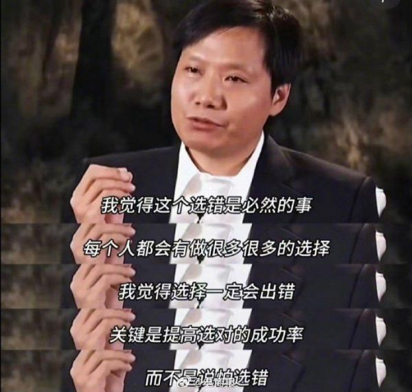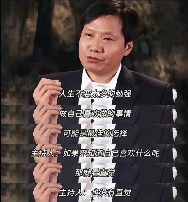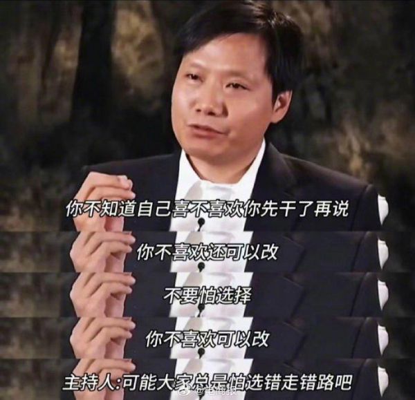 雷军:人生不要有太多勉强,做自己喜欢的事,不要怕选错!