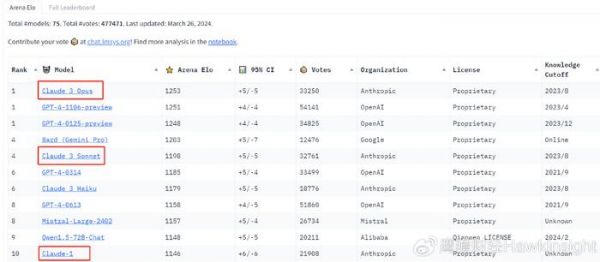 本周,人工智能初创企业Anthropic旗下的Claude 3 Opus在Chatbot Arena(一个测试和比较不同人工智能模型有效性的网站)的最新排名中,首次超越GPT-4,位列排行榜第一。