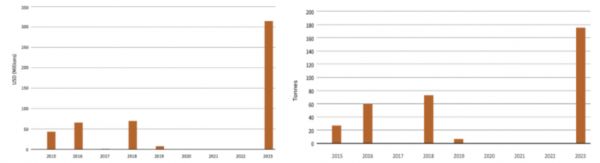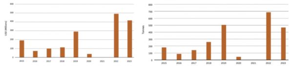 2015年~2023年瑞典核燃料出口