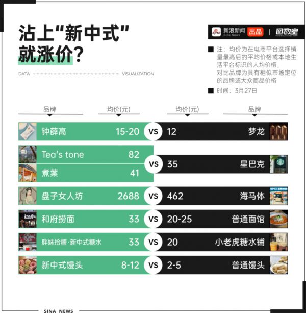 更别说在小红书上刷屏的新中式馒头,成本几十要价上百的围炉煮茶等等,加上新中式不仅流量高,身价也翻了倍。