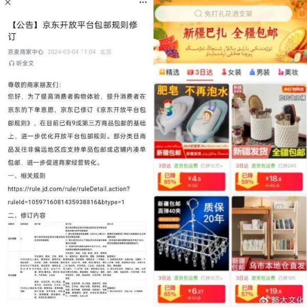 图:京东优化59元包邮,拼多多升级新疆包邮