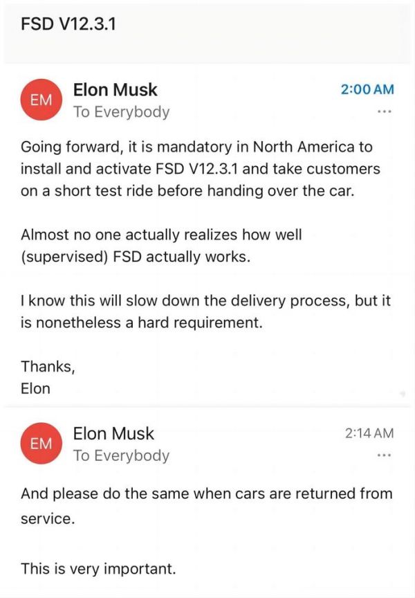 对应的解决方案有两个,首先是要求试驾车必须开通FSD,且销售在试车环节要让客户体验FSD,马斯克认为这虽然会拖慢交付的节奏,但FSD的开通率应该会有提升;第二个办法是向车主发放一个月的FSD免费试用机会。