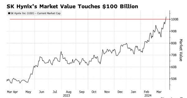 所以,就在老黄的英伟达市值突破万亿的时候, SK 海力士的股价,也在去年偷偷翻了一倍多,如今市值已经突破千亿了。。。