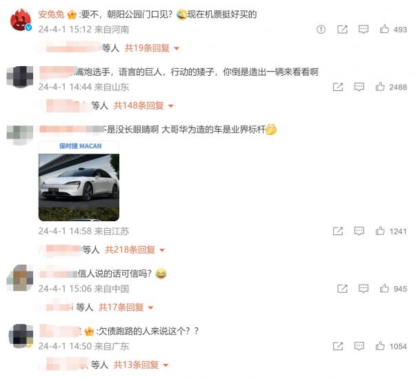贾跃亭在网络上的锐评基本见不到支持者,上一次吐槽高合汽车底下评论区的言论一边倒地嘲讽贾跃亭,而这一次主动开炮吐槽支持者更多、流量更高的小米汽车,结果同样不例外。