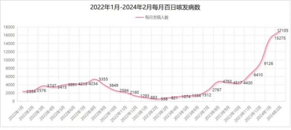 据国家疾病预防控制局最新发布的数据显示,今年2月,共报告了17105例百日咳,比2023年12月多了7979例,是去年同期的近32倍。2024年头两个月全国报告的百日咳病例数量激增,达到了32380例,其中13人不幸死亡。多地防疫部门也均报告近期感染患者住院率升高,甚至有医生在接受受访时,称有病人咳断肋骨。