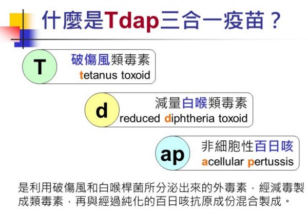 预防百日咳的最佳方案是接种百白破疫苗。百白破疫苗是无细胞百日咳菌苗、白喉类毒素、破伤风类毒素三联疫苗。当前常见的百日咳疫苗有两类:基于灭活百日咳鲍特菌制成的全细胞疫苗(DTwP)和基于高度纯化的选择性细菌抗原制成的无细胞疫苗(DTaP)。我国目前普遍使用的百白破疫苗是用于婴幼儿的DTaP。现在美国已经上市两款Tdap疫苗:Boostrix和Adacel,但目前未在中国大陆上市。