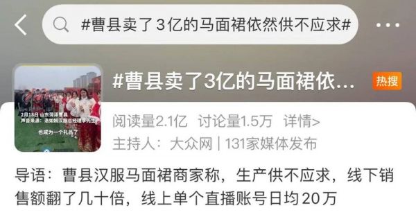 仅两个月曹县马面裙销售额近5.5亿。