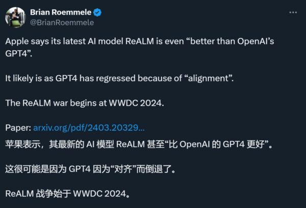 苹果研究员称其设备端模型强于GPT4,Siri将大幅提升智能程度