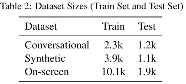 在数据集方面,本文采用的数据集包含综合创建的数据或在注释器的帮助下创建的数据。数据集的信息如表 2 所示。