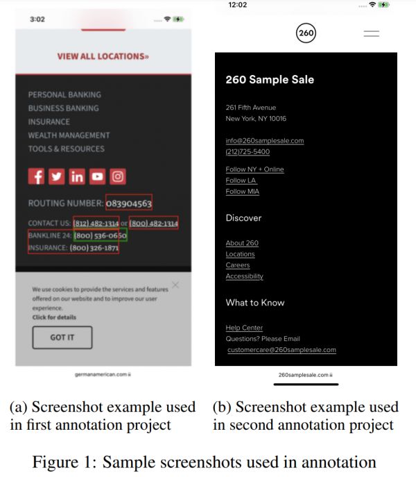其中,对话数据是用户与智能体交互相关的实体数据;合成数据顾名思义就是根据模板合成的数据;屏幕数据(如下图所示)是从各种网页上收集的数据,包括电话号码、电子邮件等。