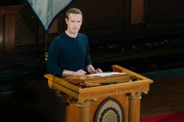 图:Facebook首席执行官马克·扎克伯格在乔治敦大学发表演讲