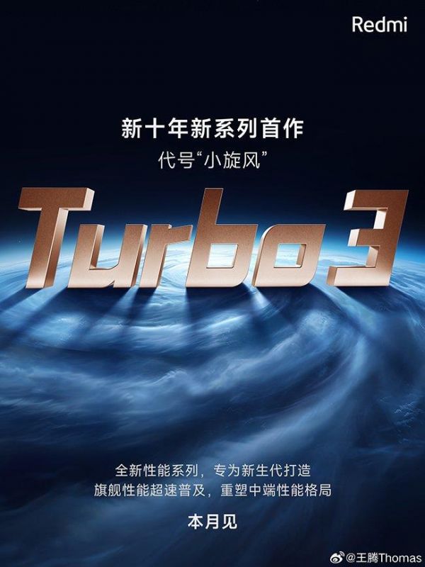 Redmi Turbo 3正式官宣 代号为小旋风本月内发布