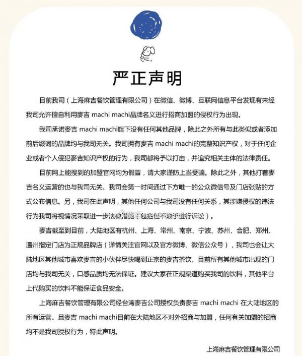 此后很长的一段时间里,麻吉公司都忙于打击山寨。比如,通过官方微博和公众号等渠道发文强调,品牌只以直营方式经营。同时,麦吉官方每隔一段时间都会更新品牌最新的门店数,且特别声明“除上述餐厅外无其他分店”。