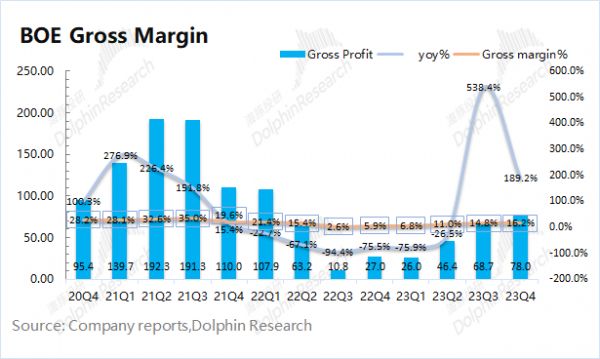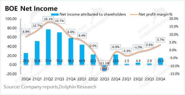 京东方在2023年第四季度实现归母净利润15.3亿元,利润端出现明显回升。