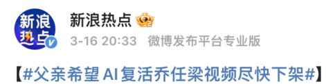 AI“复活”乔任梁、李玟、高以翔等明星的视频也在网络热传。乔任梁的父亲回应称“看到这些视频的时候感觉到不适,这是在揭伤疤,希望对方尽快下架”。