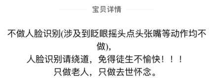 笔者在浏览各大电商平台的AI“复活”商品时,发现不少商家已经有一定的风险意识,例如在商品详情页作出“不做人脸识别”“只做老人”“只做逝去的人怀念”等声明,但仅有这些声明,显然不足以规避“AI复活”产业潜在的法律风险。