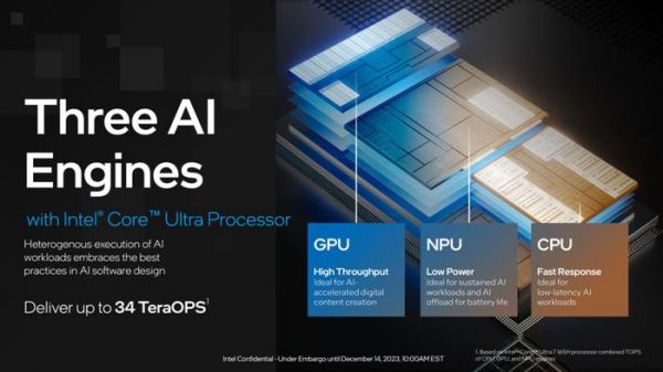 从之前多个来源的传闻以及英特尔高管的说法来看,40 TOPS(每秒万亿次运算)是微软对于下一代 AI PC 的最低算力要求,而且需要注意的是,这是对 NPU 的要求,不同于当下混合架构(CPU+GPU+NPU)提供的算力。