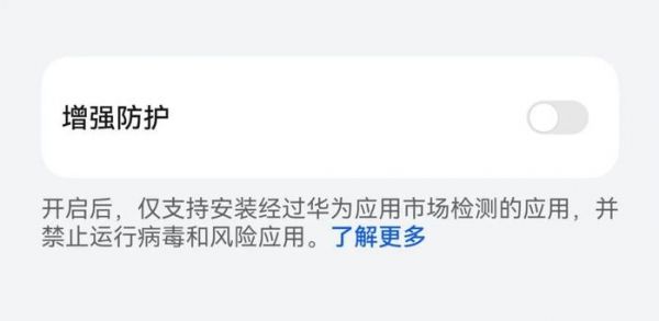 比如华为每次应用安装之后,页面都有个增强防护的开关。若开启了增强防护,即便通过《应用宝》或《浏览器》下载好了应用,也无法安装,只能跳转到华为应用市场重新下载安装,杜绝了其他渠道安装下载App的途径。