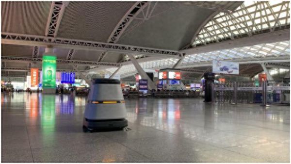(C5商用清洁机器人在广州南站进行清洁服务)