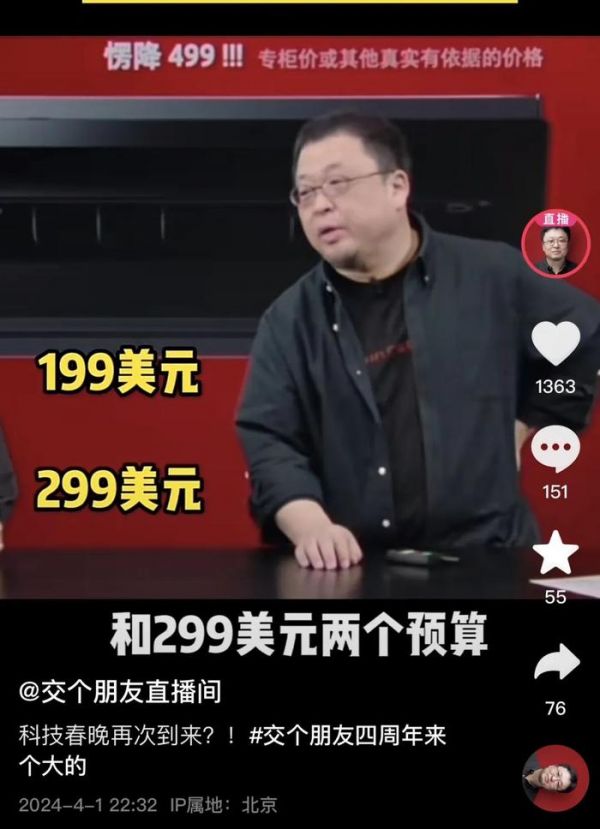 近期在交个朋友的四周年专场直播中,罗永浩向外界透露,自己即将在今年9月份推出科技产品,并呼吁粉丝准备好199美元和299美元两个预算。