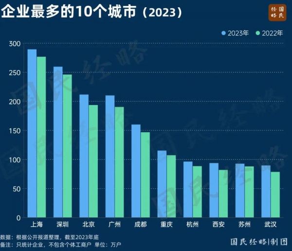 截至2023年底,上海全市企业总数达289.2万户,每10个上海人中就有一个老板,无论总量还是创业密度,均居全国第一。