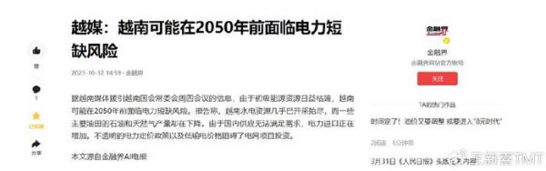 据金融界报道,据越南媒体援引越南国会常委会周四会议的信息,由于初级能源资源日益枯竭,越南可能在2050年前面临电力短缺风险。也就是说,越南还要缺电26年。