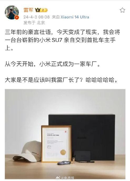 #雷军称小米正式成为一家车厂#