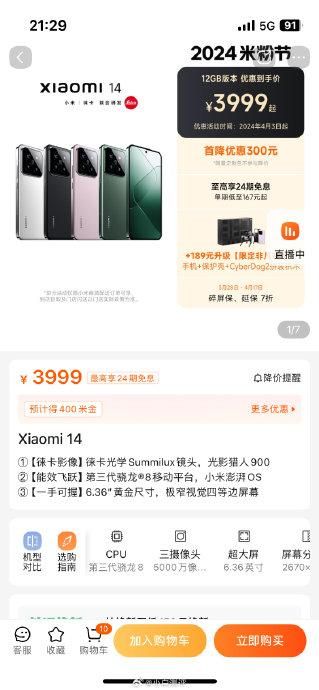 小米14 最低配降价300