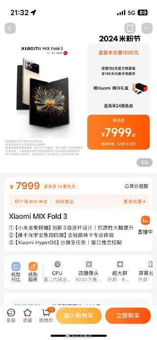 小米MIX Fold3降价1000