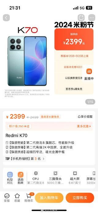 红米K70 12+256GB 2399