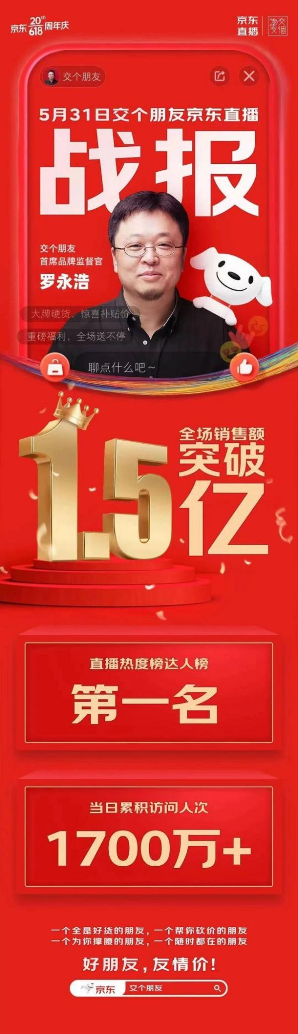 尽管京东的动作不断,但其直播电商业务依旧不温不火。直到挖来了罗永浩,直播电商业务才实现了新的突破。