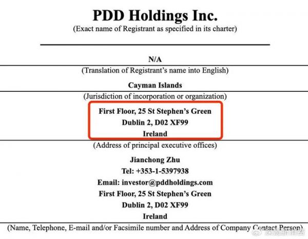 拼多多去年向美国证劵交易委员会(SEC)提交的文件显示,拼多多的“主要行政办公室”,已经由上海改为爱尔兰的首都都柏林。