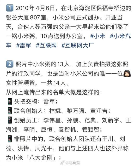 当年和雷军一起喝小米粥的14人都是谁?[思考]
