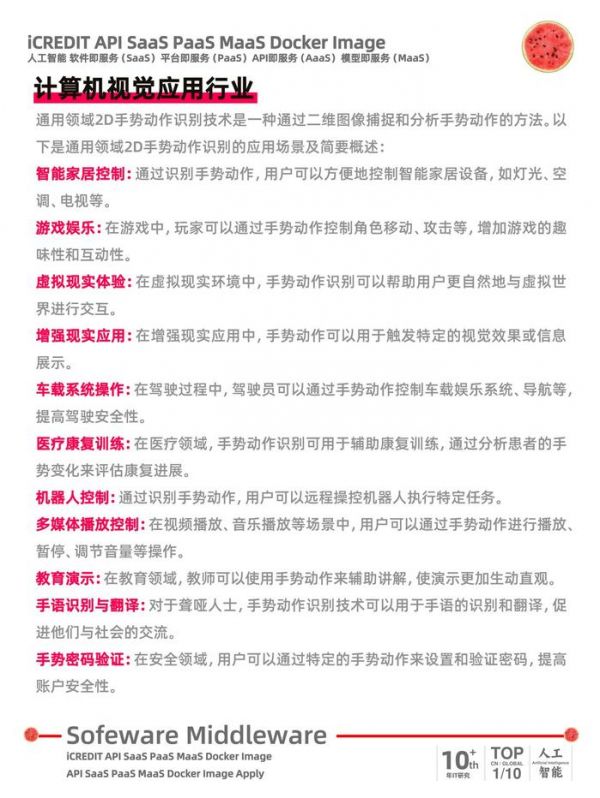 通用领域2D手势动作识别技术是一种通过二维图像捕捉和分析手势动作的方法。以下是通用领域2D手势动作识别的应用场景及简要概述: